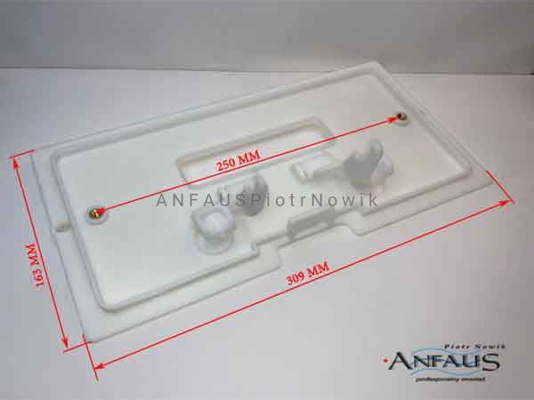 Płytka zaślepiająca otwór rewizyjny. Płytka stanowi część składową zbiornika, która służy do podnoszenia cięgien zaworu spustowego.