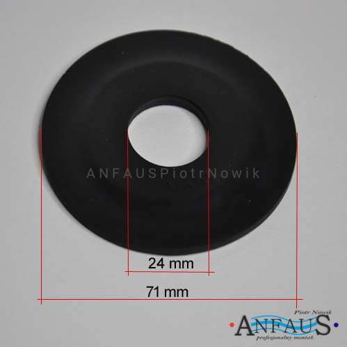 Czarna uszczelka do zaworu spustowego o średnicy zewnętrznej 71 mm i średnicy wewnętrznej 24 mm