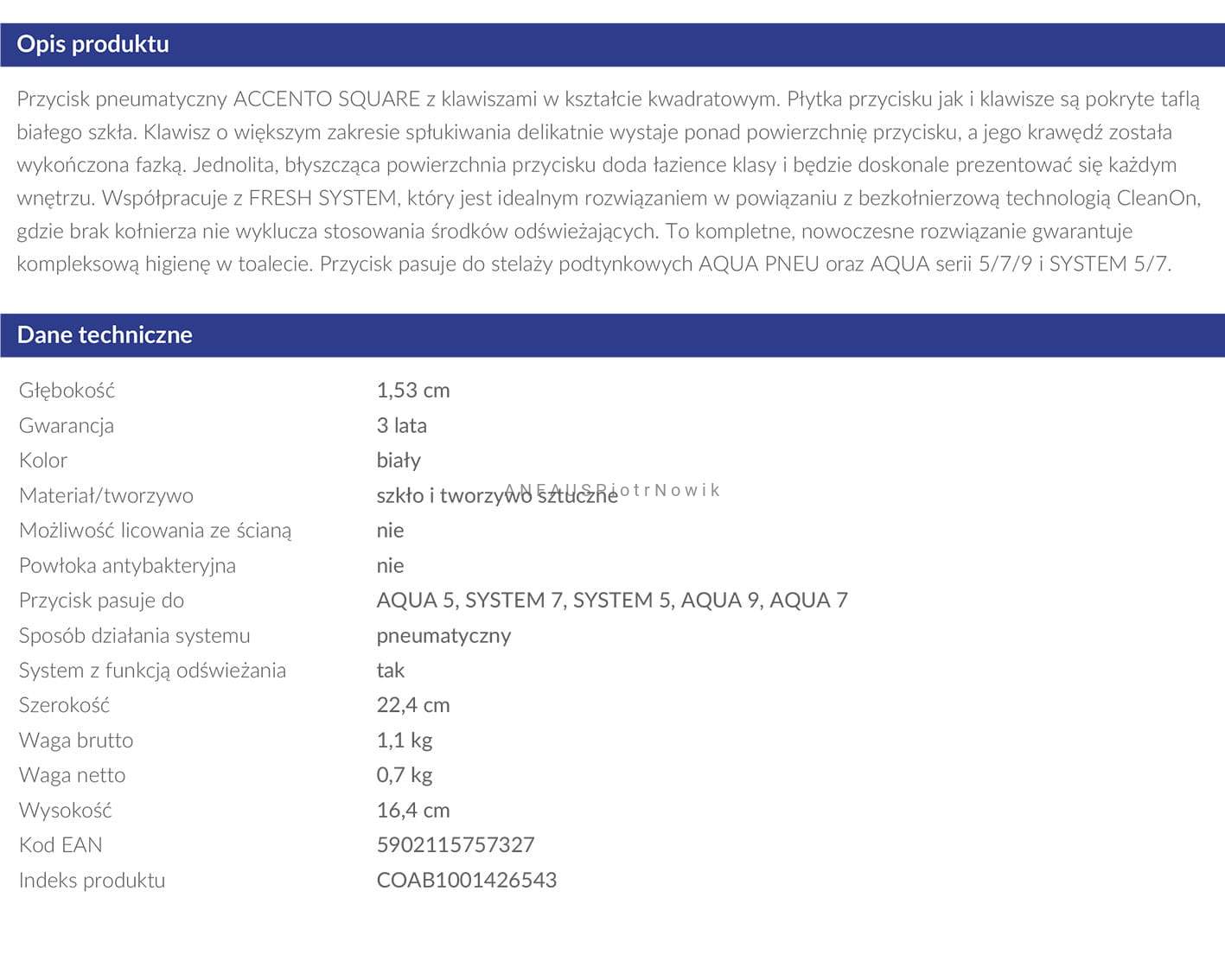 Cersanit Przycisk pneumatyczny ACCENTO SQUARE szkło białe S97-054