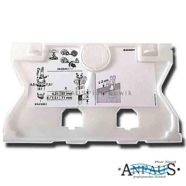 Biała płytka z obrazkami zaworów zakrywa otwór serwisowy. Przeznaczona do spłuczki podtynkowej WC Geberit DUOFIX Sigma 12 cm. - UP320, spłuczki podtynkowej Geberit DUOFIX 12cm. - UP320, oraz płyt ozdobnych Geberit AQUACLEAN do desek sedesowych i urządzeń z funkcją higieny intymnej.